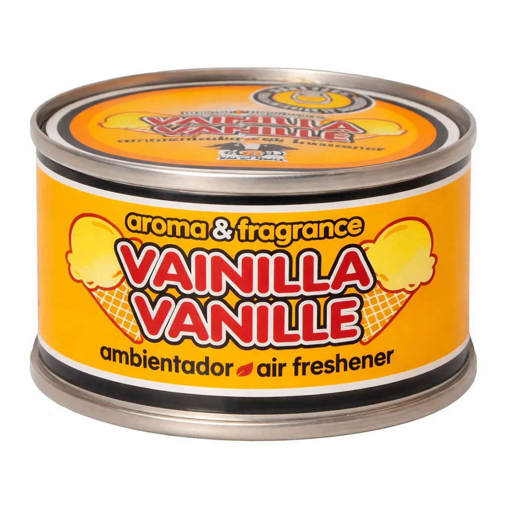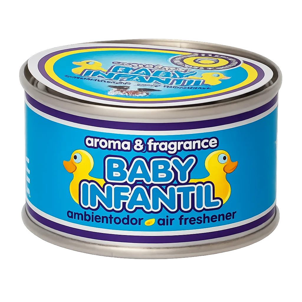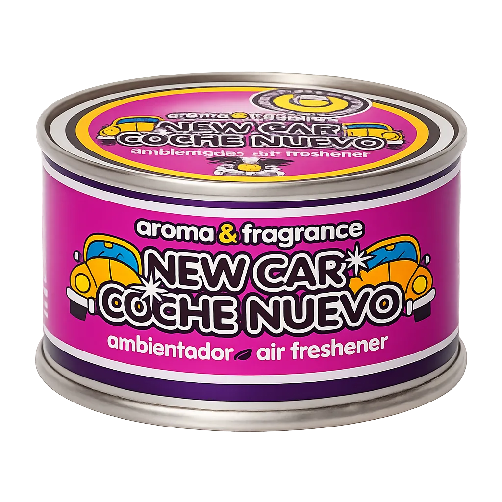 Atractivo ambientador de coches en formato de lata con base orgánica, su mayor tamaño permite una mayor duración e e intensidad del producto. El envase está fabricado en aluminio de baja densidad con un recubrimiento porcelánico que asegura una perfecta conservación del producto antes de su uso. Es la única lata del mercado, que contiene una rejilla en su interior de seguridad garantizando asi, una perfecta fiabilidad del producto al alcance de los niños.