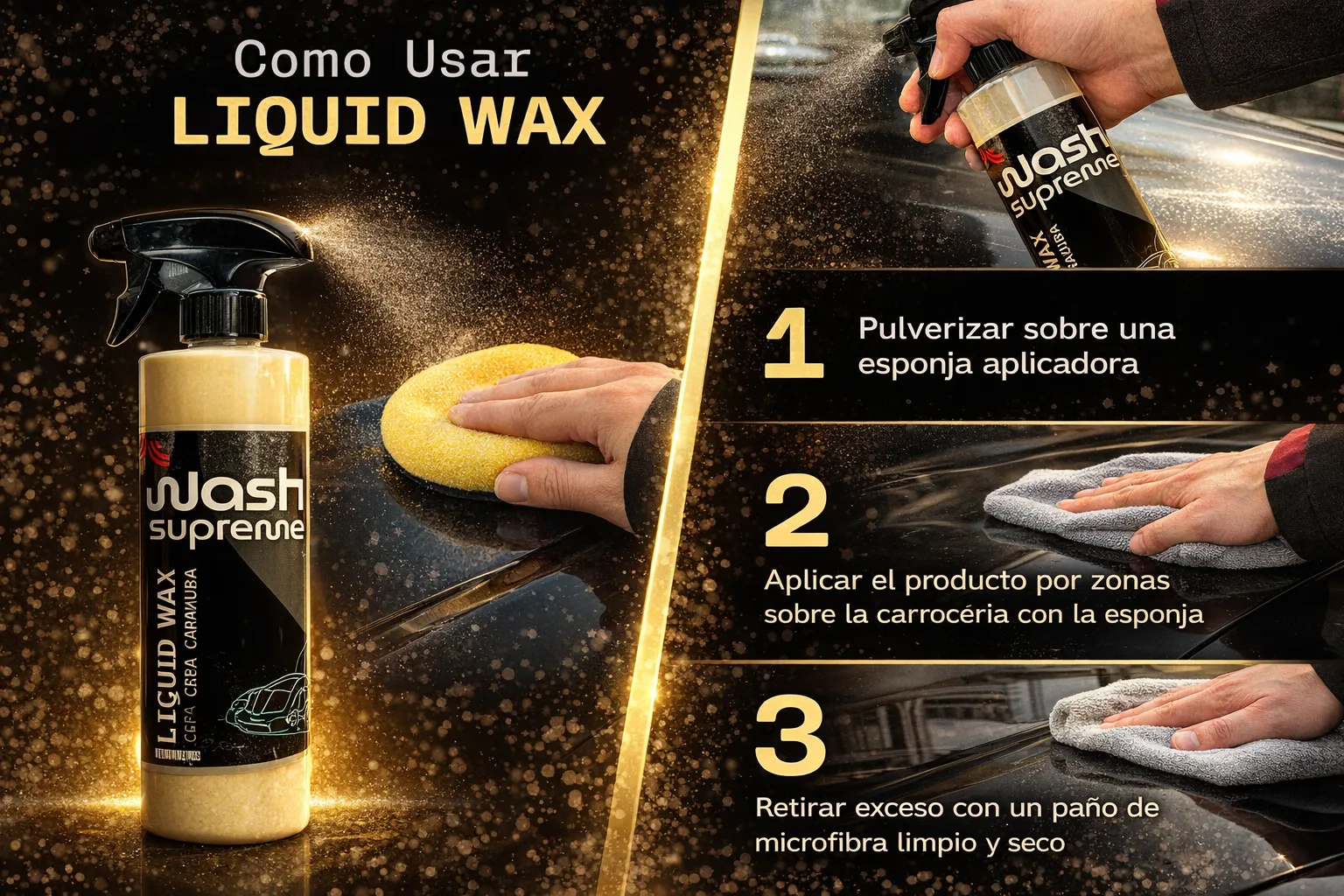 - Uso Adicional: También puedes aplicar LIQUID WAX en cristales y llantas 🪟🚗, asegurándote de realizar una correcta limpieza previa.