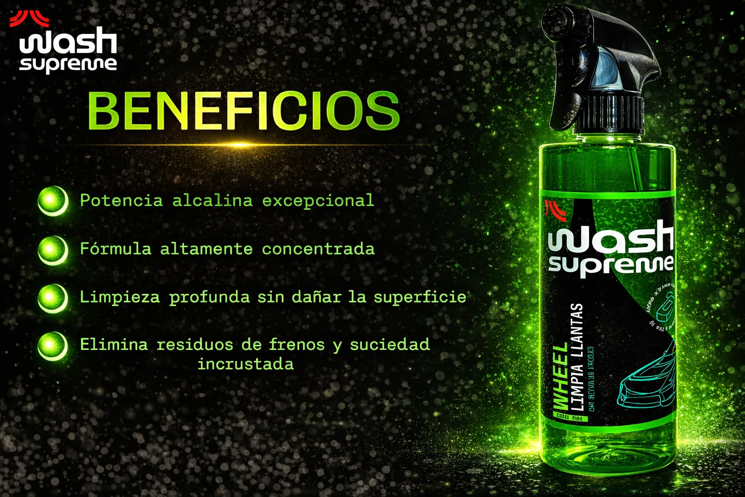 - Poder Alcalino Avanzado: Ideal para eliminar grasa, residuos de frenos y suciedad incrustada, devolviendo a tus llantas su brillo original.