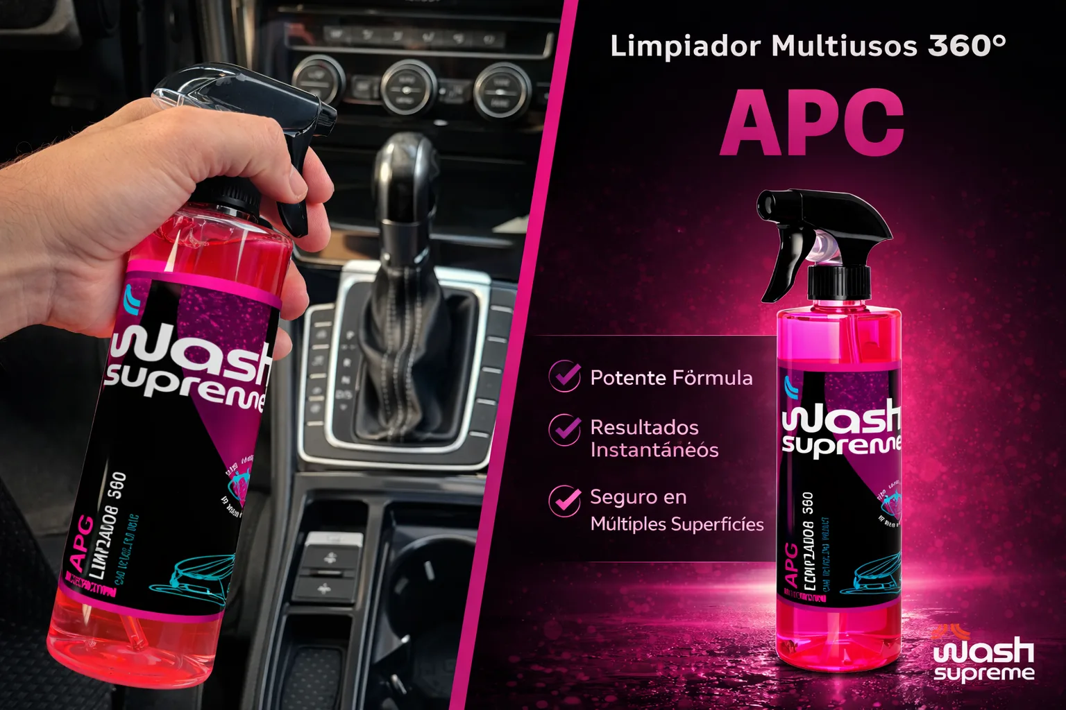 APC – La Solución Integral para el Cuidado de tu Vehículo Mantener tu coche limpio no tiene por qué ser complicado. Con APC, cuentas con un limpiador versátil y seguro que cubre todas tus necesidades, tanto en el exterior del coche como en el interior. Su fórmula no cáustica es ideal para eliminar suciedad, grasas y aceites de forma eficiente, cuidando todas las superficies sin dañarlas.