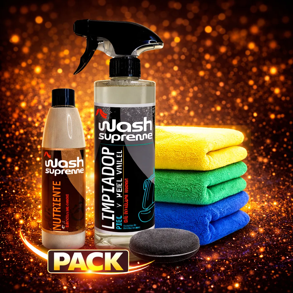 Este pack profesional está diseñado para ofrecer un tratamiento integral de superficies de piel natural o polipiel, combinando limpieza profunda, nutrición efectiva y una aplicación segura y eficiente.